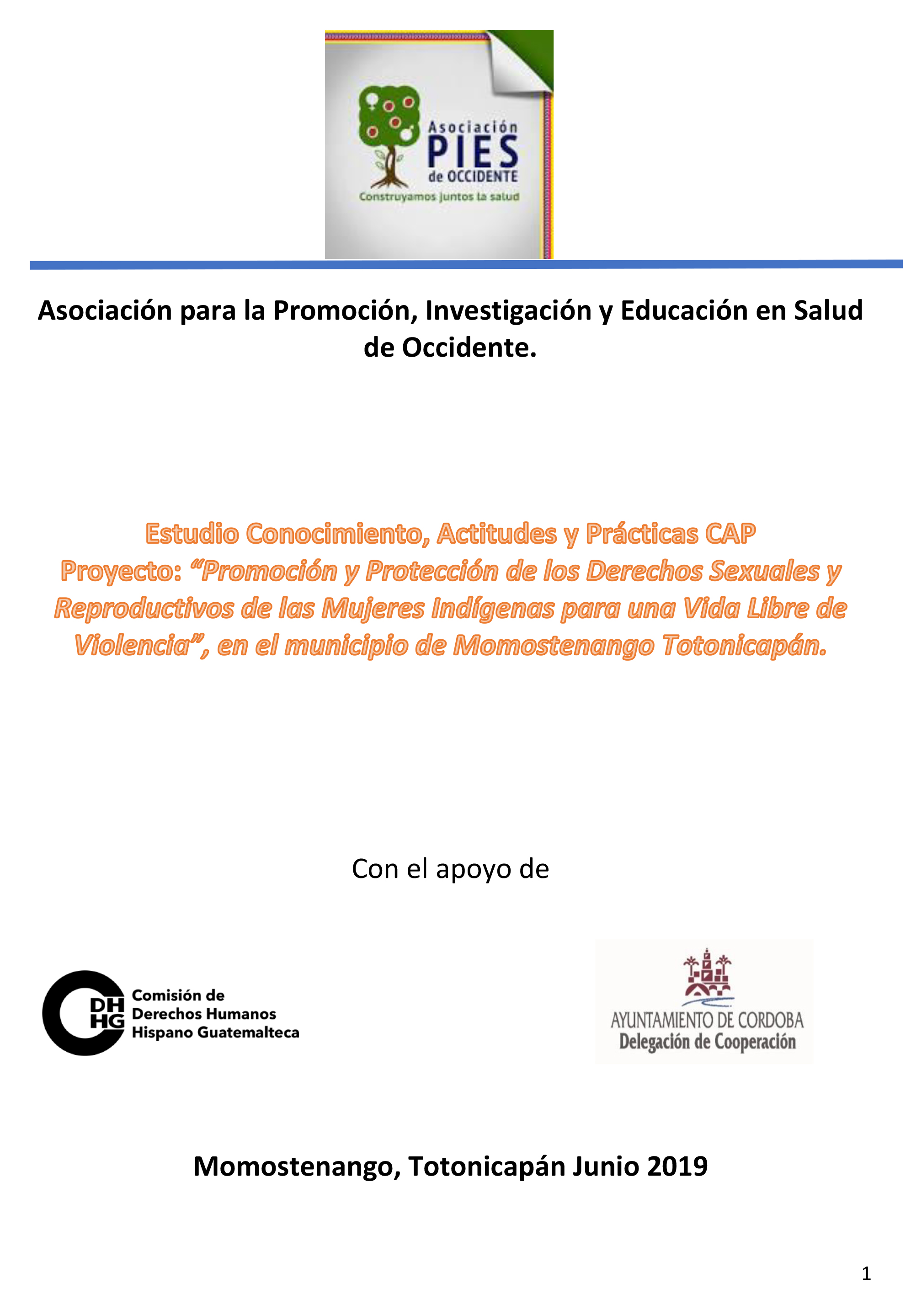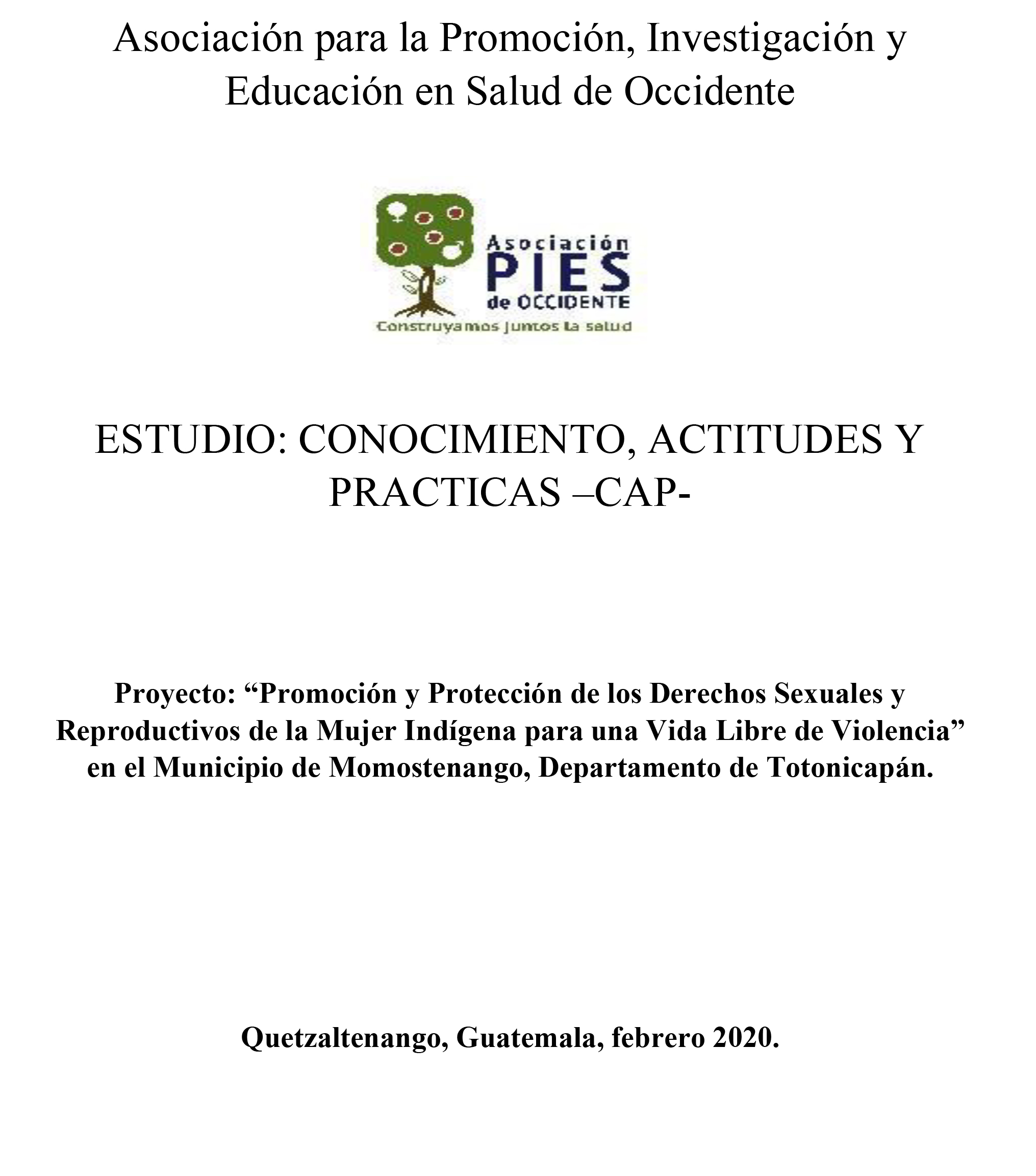 Estudio: Conocimiento, Actitudes Y Prácticas -CAP-, Del Proyecto “Promoción Y Protección De Los Derechos Sexuales Y Reproductivos De Las Mujeres Indígenas Para Una Vida Libre De Violencia”, En El Municipio De Momostenango Totonicapán